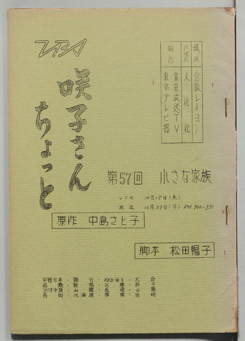 主な出演 : 酒井和歌子,千秋実,菅野直行,浦辺粂子,関口宏,松山英太郎,茅島成美,加藤春哉,高梨木聖,木村豊幸,夏圭子,坂根小夜子,沢村貞子,乙羽信子,伊藤雄之助
