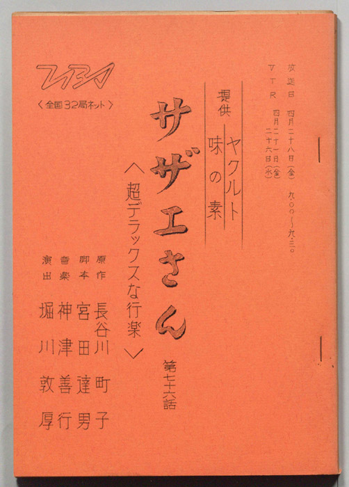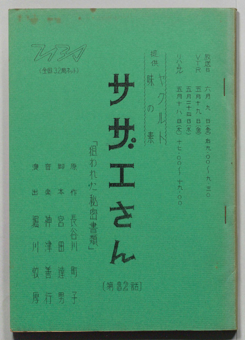 主な出演 : 江利チエミ,川崎敬三,森川信,清川虹子,吉原誠利,上原ゆかり,小笠原章二郎,浅香春彦,東京の静かな住宅地に住む「磯野家」には、父・波平、母・フネ、長女・サザエ、長男・カツオ、次女・ワカメが周囲の人々と共に、賑やかに暮らしていた。後にサザエはフグ田マスオと結婚して、長男・タラオが誕生し三世代家族として、昭