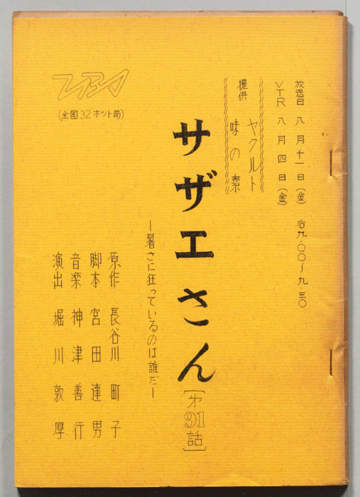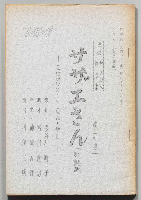 主な出演 : 江利チエミ,川崎敬三,森川信,清川虹子,吉原誠利,上原ゆかり,犬塚弘,本郷秀雄,はせさん治,丘ゆり子東京の静かな住宅地に住む「磯野家」には、父・波平、母・フネ、長女・サザエ、長男・カツオ、次女・ワカメが周囲の人々と共に、賑やかに暮らしていた。後にサザエはフグ田マスオと結婚して、長男・タラオが誕生し三世代家族として、昭