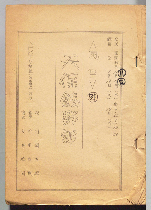 主な出演 : (すべて手書き)佐分利信,八千草薫,川合伸旺,塚本信夫,内田稔,佐野タダ枝,英百合子,高橋正夫,永田靖