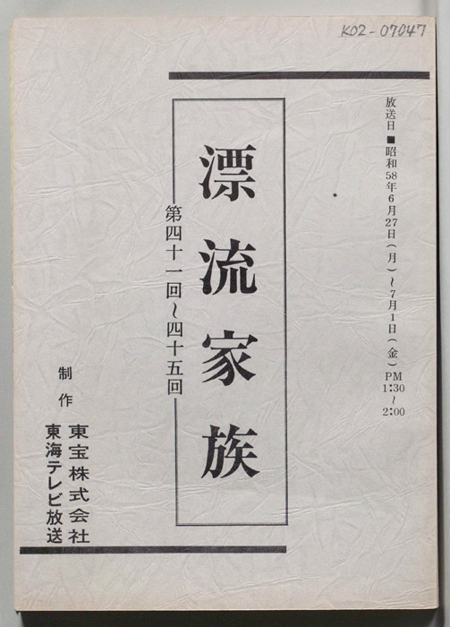 主な出演 : 三田佳子,川崎敬三,長岡輝子,黒柳徹子,沢村貞子,田辺靖雄,松本留美,川地民夫,山本紀彦,真屋順子- 作家 : 土井行夫