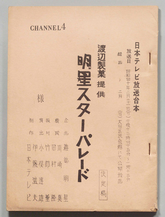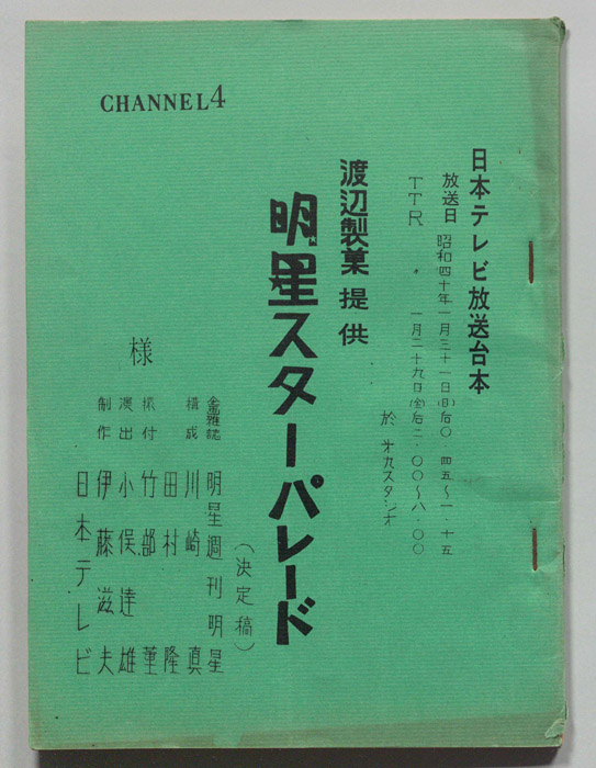 主な出演 : 由美かおる,榊原ルミ,藤村有弘,スクールメイツ,三田明,青江三奈,森進一,赤木二郎,美川憲一- 作家 : 西野浩三,[川崎真]