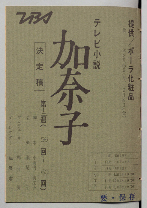 主な出演 : 中山仁,川津祐介,葉山葉子,服部マリ,高森和子,湊俊一,勝部演文,市川男女之助,小掘明男- 作家 : 高久進,(構成)深作欣二,佐藤純弥