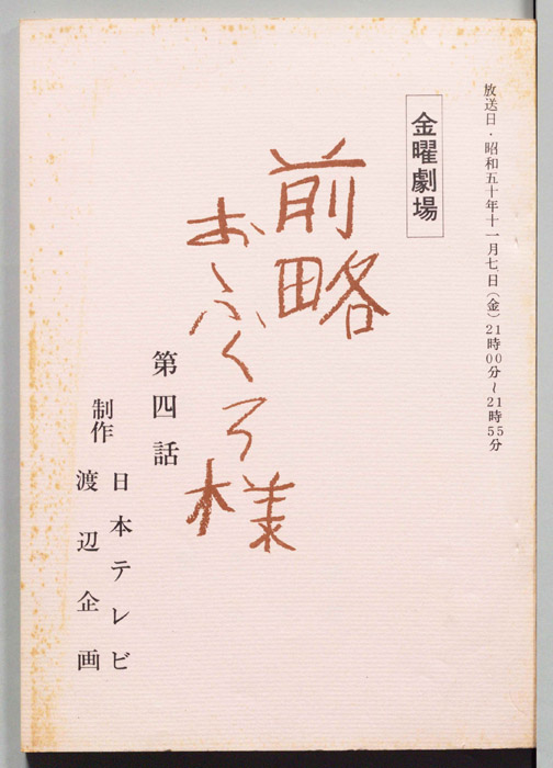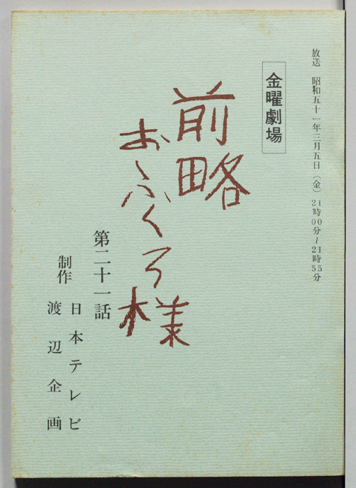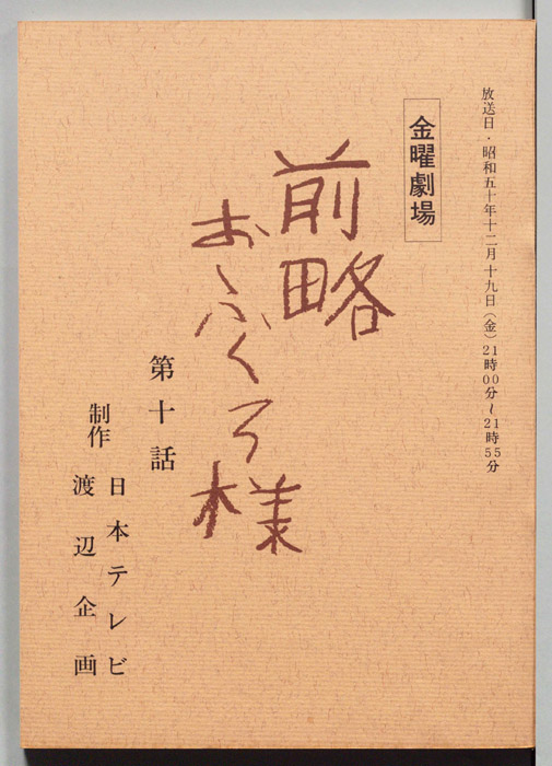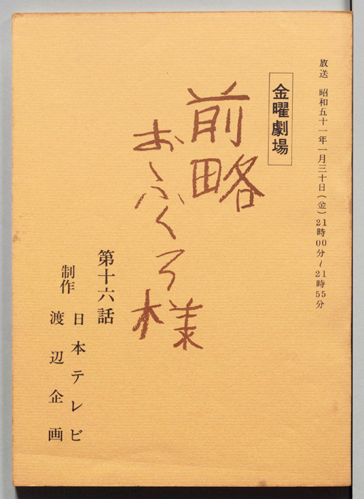 主な出演 : 大原麗子,音無美紀子,前田晃一,児玉清,上条恒彦,橋爪功,小倉一郎,利重剛,上原ゆかり,川谷拓三,石井ふく子- 作家 : 市川森一