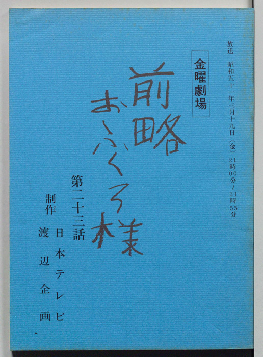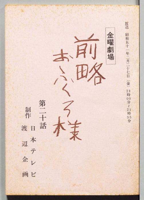 主な出演 : 萩原健一,北林谷栄,丘みつ子,小松政夫,小原秀明,石井富子,岡野三穂,夏海千佳子,浅野亜子,室田日出男,川谷拓三,大口広司,高月忠,坂口良子,梅宮辰夫- 作家 : 古田求