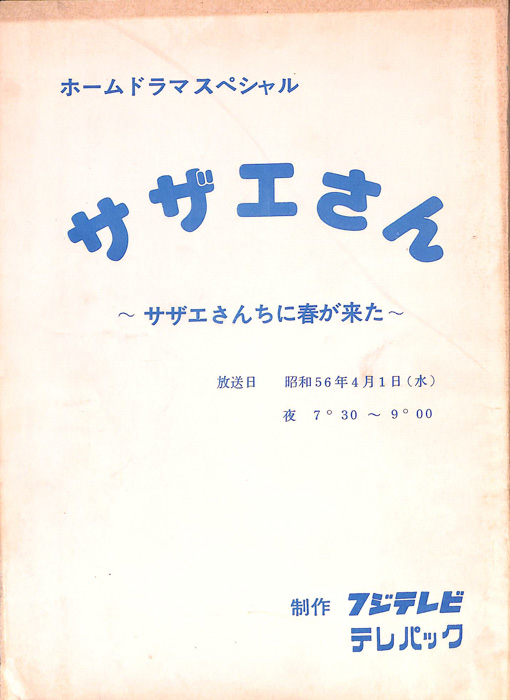 主な出演 : 星野知子,小野寺昭,高山幸久東京の静かな住宅地に住む「磯野家」には、父・波平、母・フネ、長女・サザエ、長男・カツオ、次女・ワカメが周囲の人々と共に、賑やかに暮らしていた。後にサザエはフグ田マスオと結婚して、長男・タラオが誕生し三世代家族として、昭