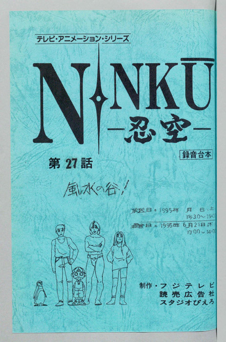 主な出演 : (風助)松本梨香,(藍眺)真殿光昭,(橙次)小杉十郎太,(里穂子)林原めぐみ,(ヒロユキ)鈴木勝美,(メキラ)平松晶子,(玲児)辻谷耕史,(朱美)田中敦子,(町長)渡部猛,(レイラ)佐藤しのぶ,(側近A)大滝進矢,(側近B)大【NINKU―忍空―】架空史EDO歴、帝国復活を狙う将軍家と民主勢力による大きな戦乱があった。この大戦の最中、わずか数十名の部隊で帝国軍を壊滅寸前にまで追い詰めた集団があった。その名は「忍空隊」か