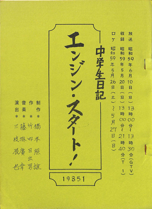主な出演 : 崎裕次,藤田康雄,広瀬五朗,多田木亮佑,青井洋一郎,松永としよ,堀田和則,岡本富士太,鳥居美江,池戸陽平,藪下貴子,宇佐美太十【中学生日記】 中学生日記は1972年から2012年3月まで長きに渡って放送された学園ドラマである。1962年4月から放送された「中学生次郎」という番組を前身とし、何度か番組名を変更しつつ本ドラマに至る。最
