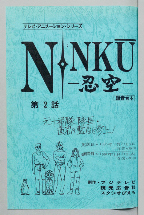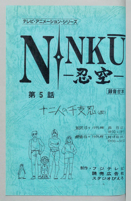主な出演 : (風助)松本梨香,(里穂子)林原めぐみ,(ヒロユキ)鈴木勝美,(辰巳)広瀬正志,(ケン)鈴木勝美,(亭主)増岡弘,(女房)滝沢久美子,(美香)かないみか,(風助の母)滝沢久美子,(男)大滝進也,(老人)峰恵研,(おばさん)磯辺万沙子,(チ【NINKU―忍空―】架空史EDO歴、帝国復活を狙う将軍家と民主勢力による大きな戦乱があった。この大戦の最中、わずか数十名の部隊で帝国軍を壊滅寸前にまで追い詰めた集団があった。その名は「忍空隊」か
