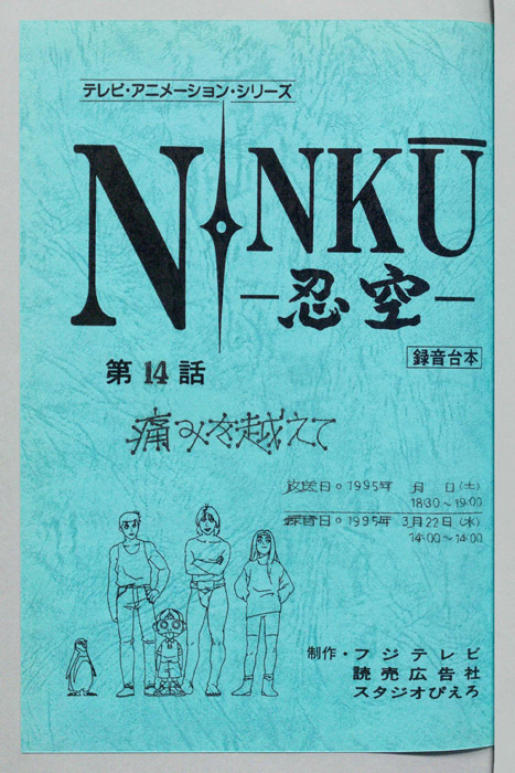 主な出演 : (風助)松本梨香,(藍眺)真殿光昭,(橙次)小杉十郎太,(里穂子)林原めぐみ,(ヒロユキ)鈴木勝美,(アジラダ)西村知道,(バサラ)松本保典,(マザー)前田敏子,(夏子)かないみか,(ヨシオ)喜田あゆみ,(リーダー)福田信昭,(部下)宮【NINKU―忍空―】架空史EDO歴、帝国復活を狙う将軍家と民主勢力による大きな戦乱があった。この大戦の最中、わずか数十名の部隊で帝国軍を壊滅寸前にまで追い詰めた集団があった。その名は「忍空隊」か