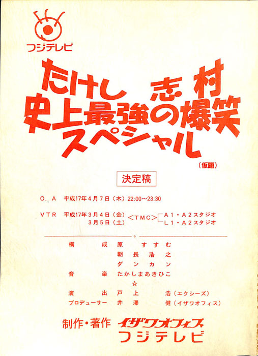 主な出演 : 志村けん,(司会)所ジョージ,草彅剛