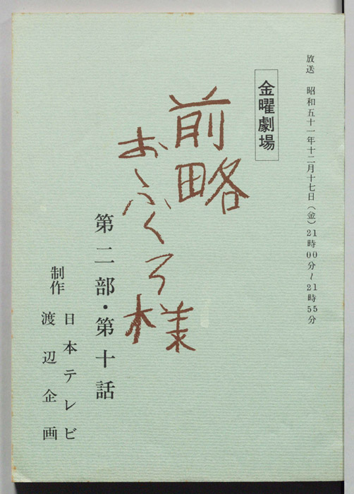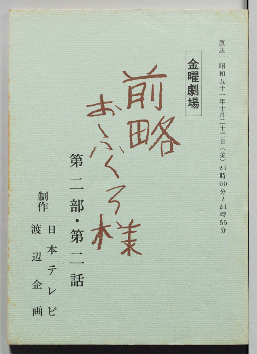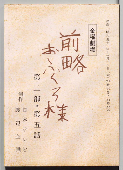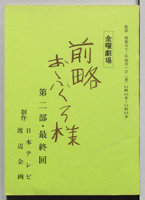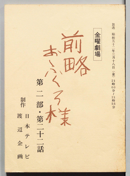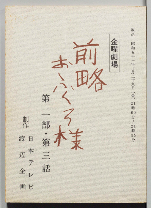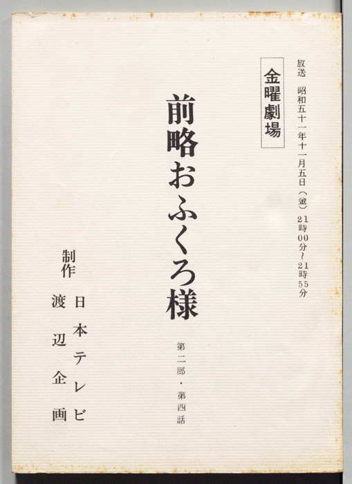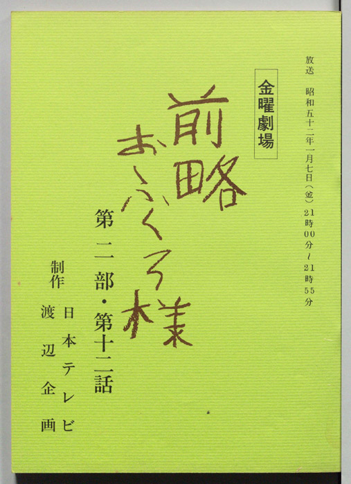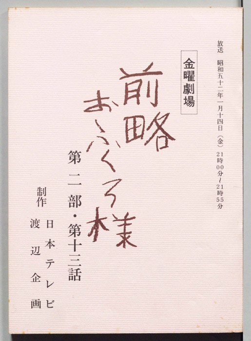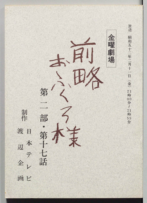 主な出演 : 市川染五郎(2代目松本白鴎),夏目雅子,加藤武,地井武男,伊東四朗,大場順,岡村清太郎,志賀勝,- 作家 : 小川英,古内一成
