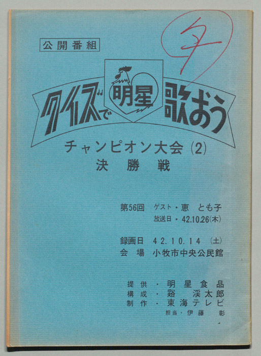 主な出演 : 楠トシエ,後藤久美子,明星っ子,タニ・ケイタロー (伴奏)ハッピーサウンズ,,(ゲスト)恵とも子