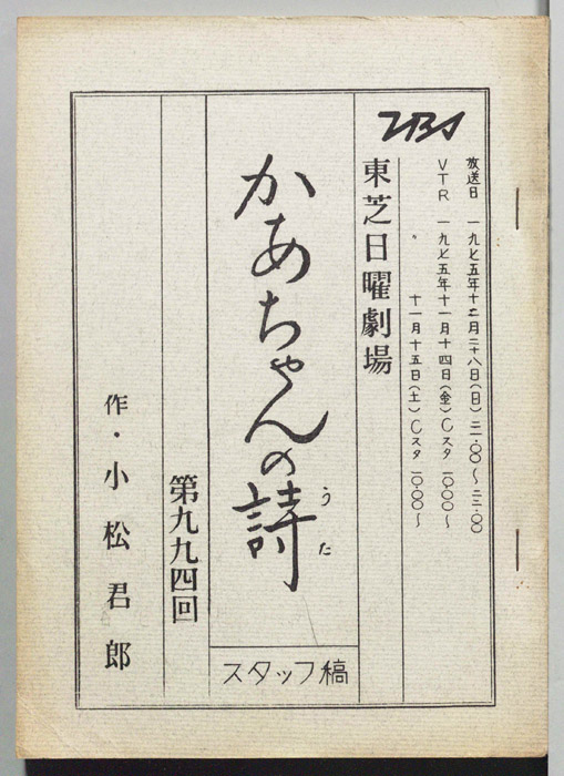 主な出演 : 緒形拳,竹下景子,多田直人,島本裕也,小田部亜弥,早崎文司,戸川京子,中島元,内山信二,大方斐紗子,劇団ひまわり,劇団いろは,東京児童劇団,劇団東俳