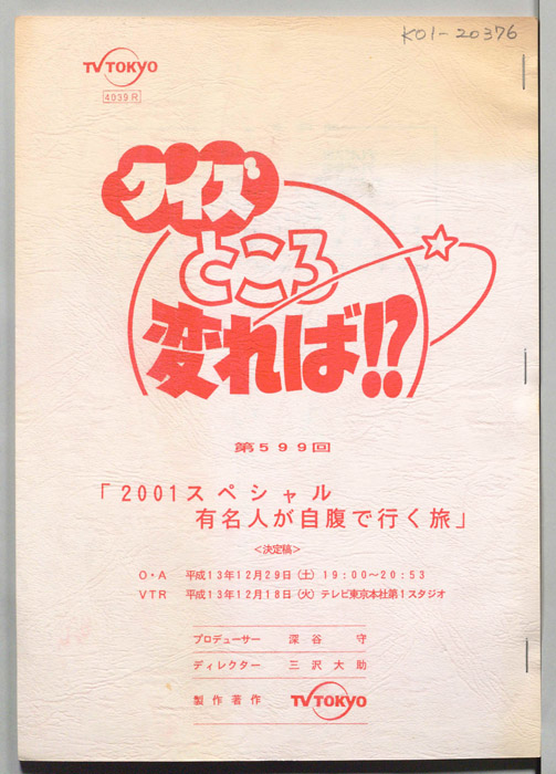 主な出演 : いかりや長介,田中健,渡辺哲,斉藤陽一郎,大林丈史,頃末弘巳,山中聡,小栗了,高橋一生,沖直未,青木和代,原哲男,藤田弓子,有森也実- 作家 : いずみ玲