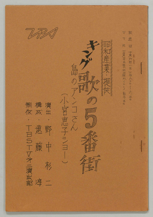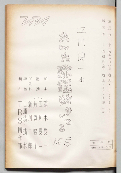 主な出演 : フランク永井,ペギー葉山,藤本二三代,新川二郎,倍賞千恵子,金井克子,アントニオ古賀,玉川良一,原田信夫とファイブ・キャラクターズ,スターダスト・ガールス- 作家 : 寺島久,星島雅之,