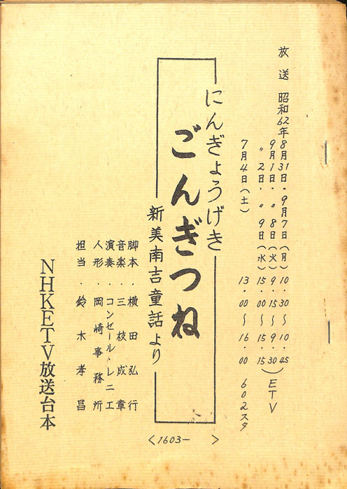 主な出演 :『まんがこども文庫』大正から昭和にかけて発表された児童文学作品を題材にした1話15分形式のテレビアニメシリーズ。第1話の『狐(原作:新美南吉)』では、樽屋の息子である「ブンロクちゃん」が村の子供たちと共に近くの町のお祭りに出掛ける話となっ