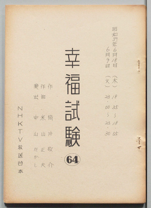 主な出演 : 織賀邦江,武内文平,露原千草,佐藤英夫,蔵悦子,大森暁美,山田己之助,溝井哲夫,幸田宗丸,原昻二,鹿沼朝子,小沢重雄,竹村紀子,江美京子,伊藤牧子,山口マチ子,新道乃里子- 作家 : 佐々木守