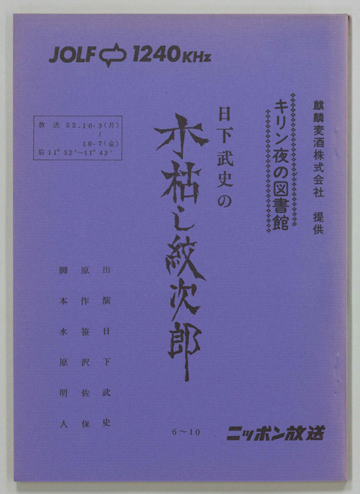 主な出演 : 第359回/藤波京子,高城淳一,日下武史,(語り手)藤野節子,第360回/藤波京子,万里陽子,城達也,日下武史,(語り手)藤野節子,第361回/田中明夫,藤波京子,万里陽子,城達也,響令子,(語り手)藤野節子