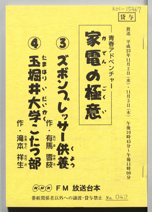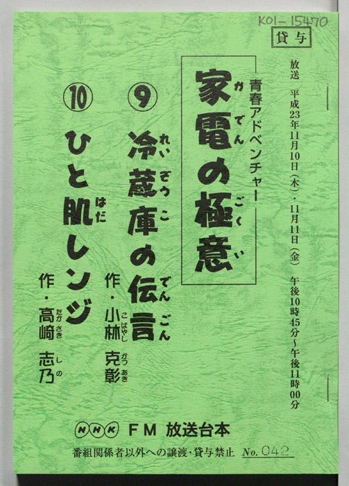 主な出演 : 春日井静奈,小林親弘,入江純,山下真琴,福士秀樹,上川路啓志,田中奈緒子,工藤千夏- 作家 : 工藤千夏