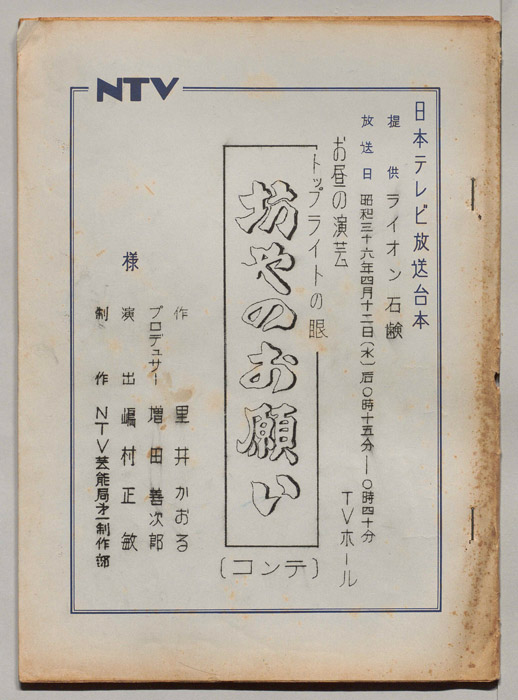 主な出演 : (手書きで)春江ふかみ,富永美沙子,笠間(?)雪雄,E・エドモンズ,ラーク・モフタビン,ダン・ヤダ・ダンサーズ,トップ,ライト,菅原文太,ラジオ東京管弦楽団