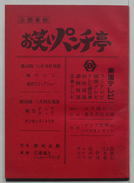 主な出演 : Wけんじ,東京コミックショー,晴乃チック,晴乃タック,ナンセンス・トリオ,(司会)南洲太郎- 作家 : 宮田達男