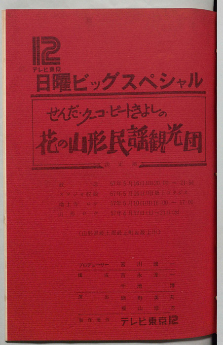 主な出演 : 沢もちつき唄保存会,今泉侃惇,井上正子,渡部あや子,山形県最上郡最上町の皆様,(司会)せんだみつお,清水クーコ,ビートきよし,(三味線)井上良次,(鳴物)佐渡直太,(尺八)沼沢弘
