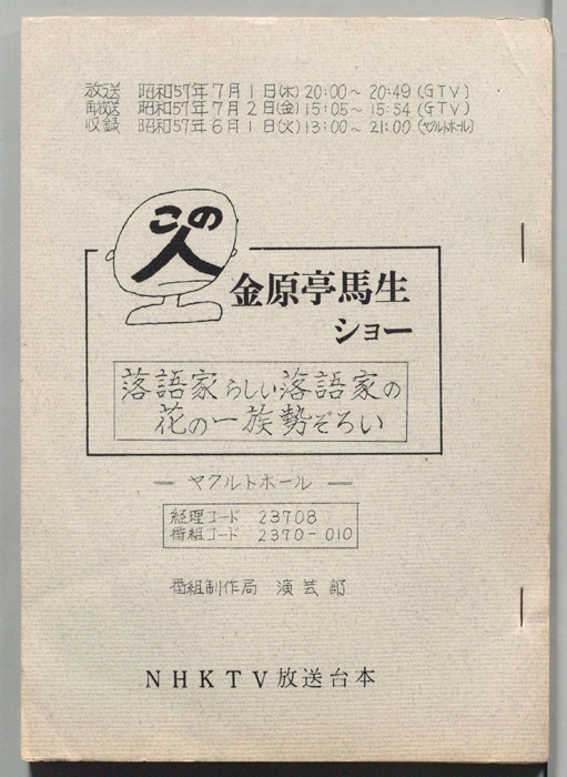 主な出演 : 金原亭馬生,古今亭志ん朝,池波志乃,宮崎美子,金原亭伯楽,金原亭駒平,春日とよ稲,(司会)月の家圓鏡