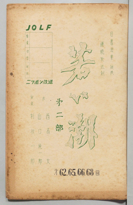主な出演 : 森繁久彌,竹脇無我,川口晶,大坂志郎,武原英子,服部哲治,砂塚秀夫,岡部正純,ミヤコ蝶々- 作家 : 梅田晴夫