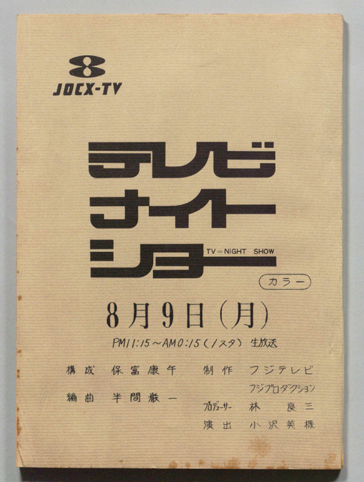 主な出演 : 藤勉,榎本晴夫,林沖,ジェーン岡田,長沢純,手塚しげる,早瀬雅男,内田裕也,ほりまさゆき,沢りり子,波多まゆみ,泉かおり,望月浩,藤本好一,奥村チヨ,槇みちる,山田寛一,杉本尉二,ミスター珍,なべおさみ,五月女まり,千原しのぶ,市川好郎,宮- 作家 : 櫻井康裕