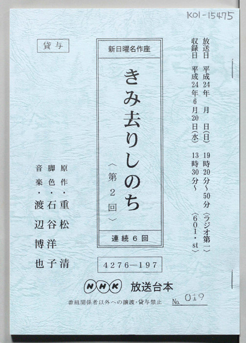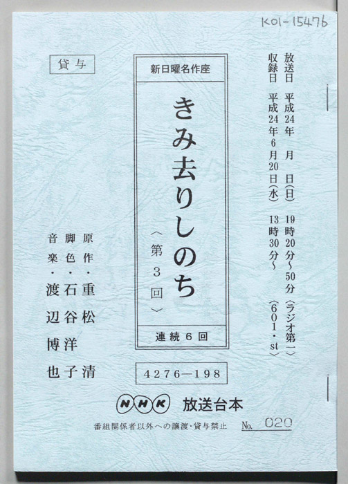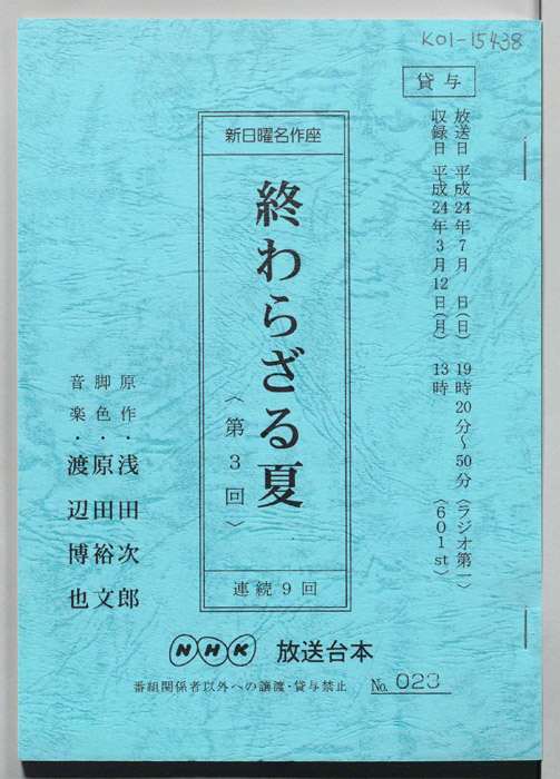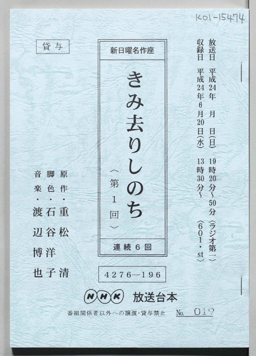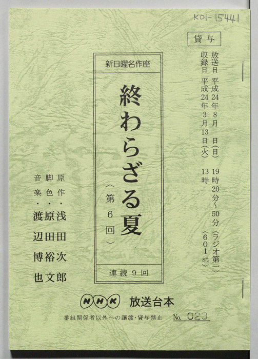 主な出演 : 乙羽信子,山下真司,三輝祐子,塩屋智章,丘山未央,田中好子,浅沼友紀子,長門裕之,今井和子,渡辺寛二,菊地浩二,家中宏,大友柳太朗,(ナレーター)奈良岡朋子