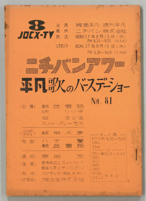 主な出演 : 夏目雅子,田中好子,青島幸男,吉行和子,本間優二,夏純子,松本ちえこ,たこ八郎,しん平,後藤加代,朝比奈えり子,平山雅代,島桂子,豊田きよみ,のがみみちよ,吉江弘子,高村玄二,松本茂,松葉豊,北條宗章,由利徹,風見りつ子(新人),名