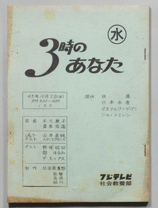 主な出演 : 西田佐知子,佐山俊二,小坂照男,西田さんの姉,木元教子,朱里みさおモダンダンサーズ,(演奏)宮間利之とニューハード,(コーラス)東京ルナアルモニコ