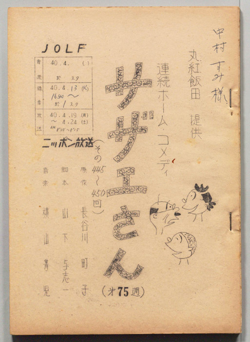 主な出演 : 横山道代,谷幹一,巌金四郎,露原千草,高橋実,竹田昭二,中村すみ,小原いづみ,笈田勝弘,大森暁美,木田三千雄東京の静かな住宅地に住む「磯野家」には、父・波平、母・フネ、長女・サザエ、長男・カツオ、次女・ワカメが周囲の人々と共に、賑やかに暮らしていた。後にサザエはフグ田マスオと結婚して、長男・タラオが誕生し三世代家族として、昭