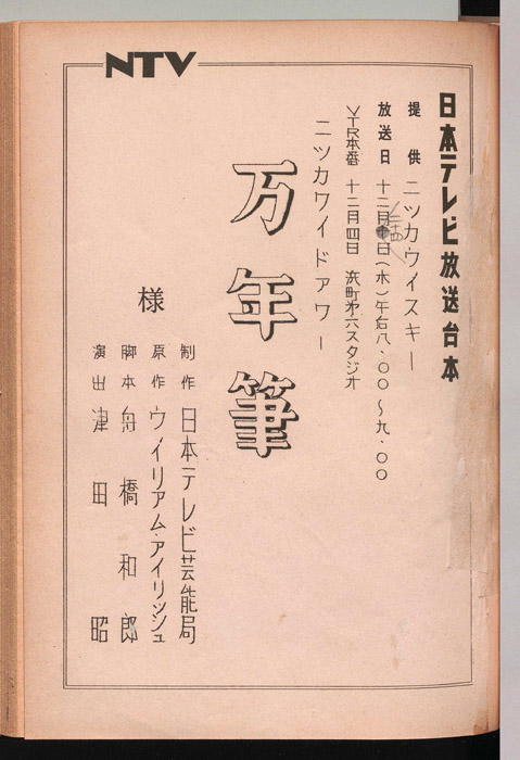 主な出演 : 勝呂誉,島かおり,山本豊三,大空眞弓,松村達雄,本郷秀雄,三遊亭円生,沢村貞子,石黒達也,山東昭子,柴田秀晴[柴田秀勝],石間健史,月森一蔵- 作家 : 矢代静一