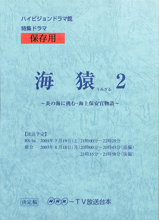 主な出演 : 国分太一,永作博美,杉本哲太【海猿2 炎の海に挑む・海上保安官物語】仙崎大輔は鹿児島県の第十管区海上保安本部に勤務する海上保安官である。巡視艇「ながれ」に乗船していたある日、先輩の池澤直樹夫妻から連絡が入った。夫妻は奄美大島に向かうフェリーに乗船していたが、そ