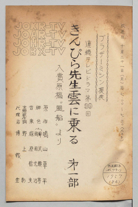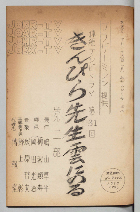 主な出演 : 加藤和夫,新珠三千代,清水元,桑山正一,山岡久乃,関京子,万里陽子,賀原夏子,東惠美子,(語り手)水島弘
