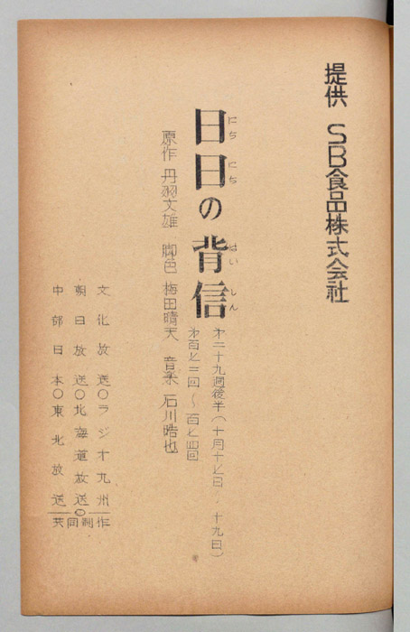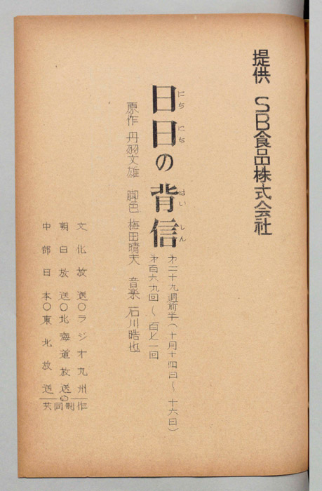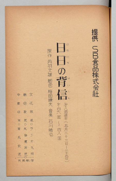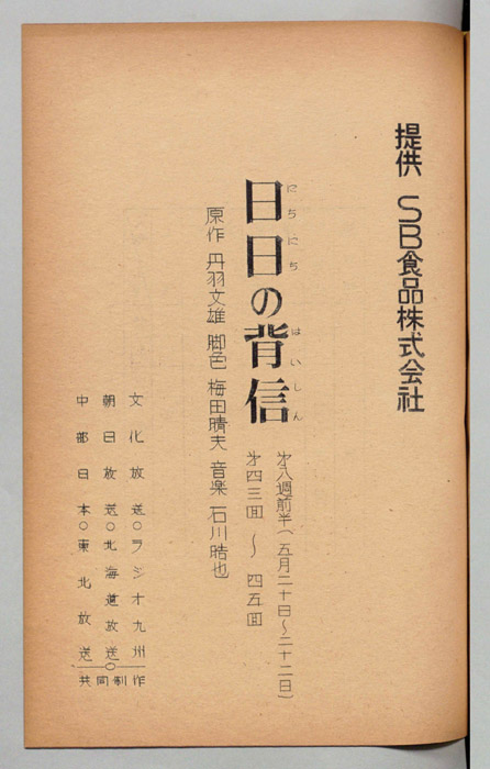 - 放送局 : 文化放送,朝日放送,中部日本,ラジオ九州,北海道放送,東北放送