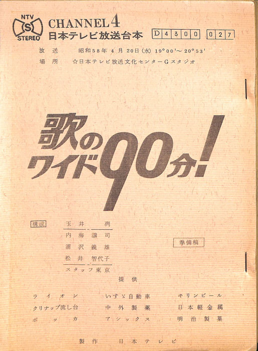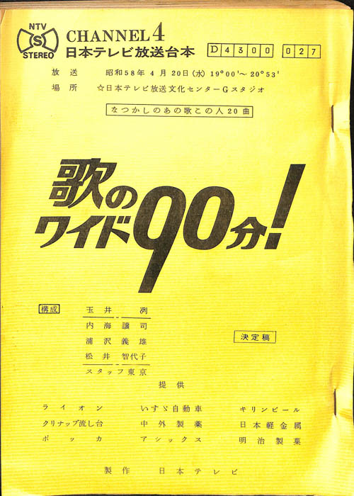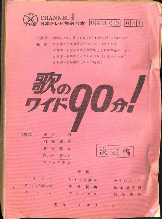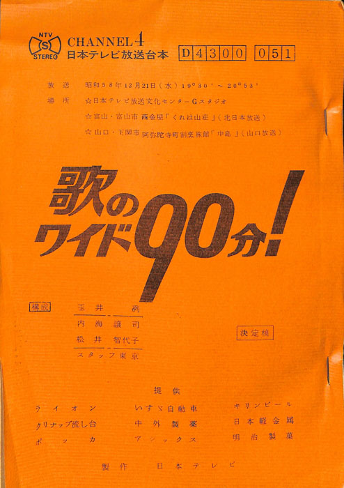 主な出演 : 小林幸子,千昌夫,川中美幸