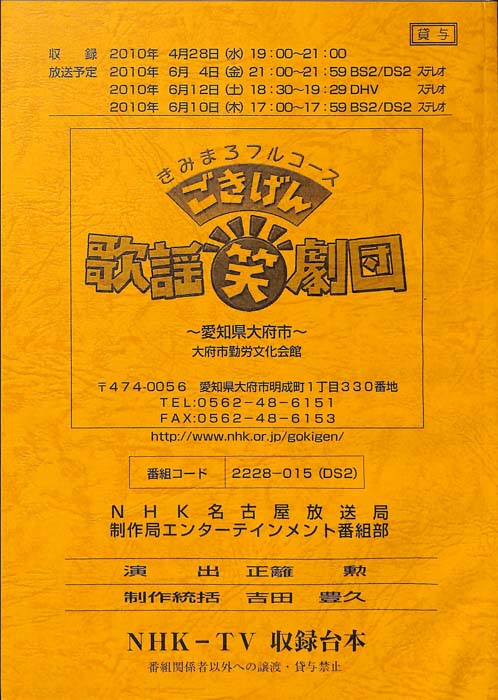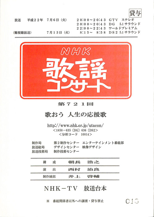 主な出演 : 秋川雅史,岩崎宏美,小林旭,小村美貴,姿憲子,千葉一夫,中村美律子,前川清,松原健之,松原のぶえ,小田切千