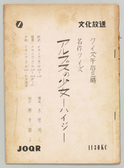 主な出演 : (手書き)文野朋子,春日俊二,村上冬樹,芦田進介,小林恭治,松尾佳子,西田昭一,(語り手)榊原アナ