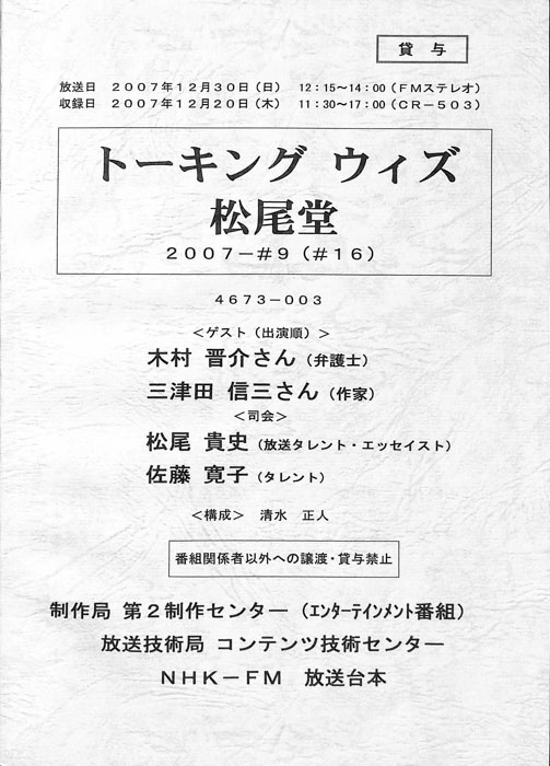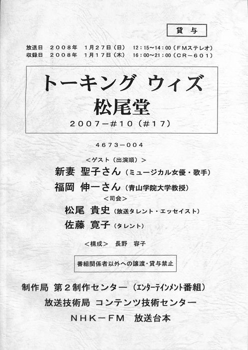 - 放送局 : NHK大阪