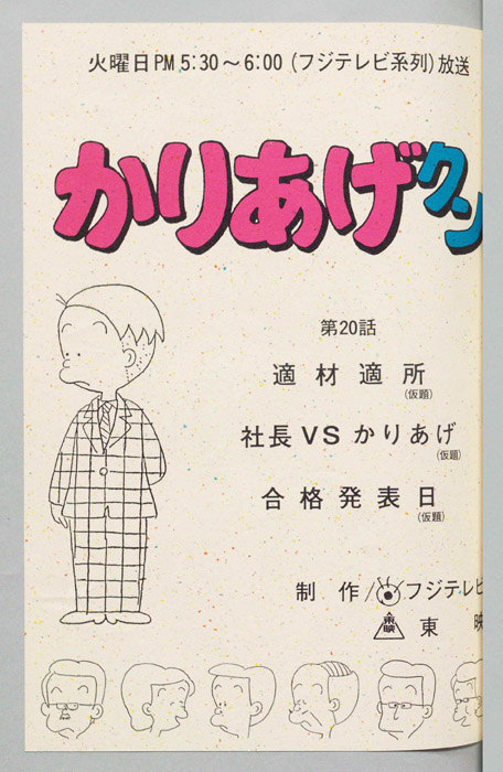 主な出演 : (かりあげ)[塩屋翼],(課長)[野田圭一],(社長)[八奈見乗児],(ヒサエ)[渡辺菜生子],(山下)[松尾銀三],(大家)[大竹宏],(オカッパ)[萩森順子],(もみあげ)[山田恭子]/(かりあげ)[塩屋翼],(古川)[難『かりあげクン』「ほんにゃら産業」の営業課に勤務し、刈り上げ頭が特徴的なサラリーマン「かりあげ正太」は、上司に媚びることを嫌い、人と同じ行動を取ることを好としない変わり者だった。しかし、イタズラをすることには天才的な能力を発揮する。正