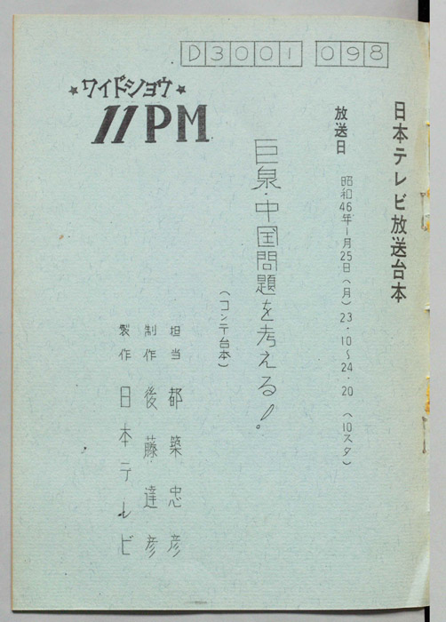 主な出演 : 大橋巨泉,松岡きっこ,大薮晴彦