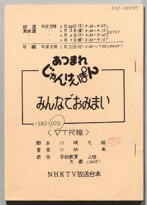 主な出演 : 内順子,(パパ:健一郎)山口健,(ママ:京子)富永みーな,(ガンモの父親)西村朋紘,(ガンモの母親)松岡洋子,(江戸川先生)岸野幸正,(オスモグラ)金光宣明,(カエル)宇和川恵美,(主婦たち)【ひみつのアッコちゃん】加賀美あつ子は小学5年生の女の子。いつも大事に持っていた鏡を割ってしまい、庭に鏡のお墓を作って埋めた。その晩、鏡の妖精が現れ、今まで大切にしてくれたお礼にと、魔法のコンパクトをプレゼントする。そ