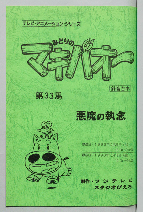 主な出演 : 原調教師)伊藤栄次,(カスケード)玄田哲章,(アマゴワクチン)松本保典,(モーリアロー)山田雅人,(サトミアマゾン)伊藤栄次,(アナ)吉田伸男,(記者たち)松本保典,伊藤栄次,大川透,(高速道路の男)松本保典,(高速道路の女)【みどりのマキバオー】北海道の牧場『みどり牧場』の名馬「ミドリコ」から、まるでロバのような不思議な姿の馬「マキバオー」が生まれる。その後、みどり牧場の借金を返済する為、ミドリコが堀江牧場へ売られることになり、母