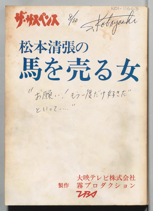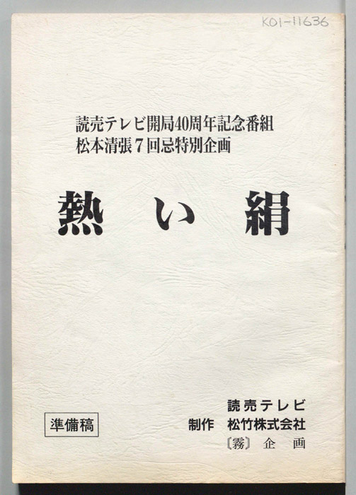 主な出演 : 松本清張,島田陽子,都はるみ,村田英雄,(司会)黒柳徹子