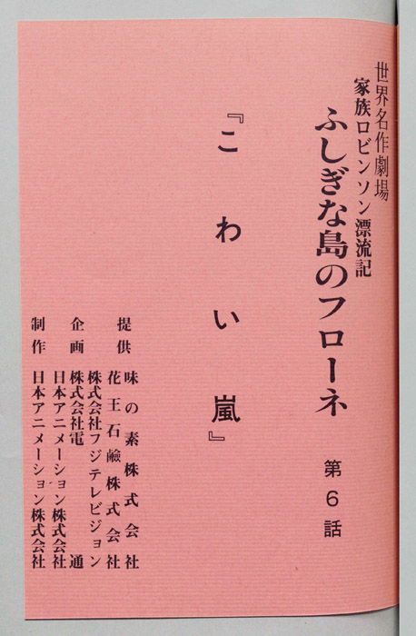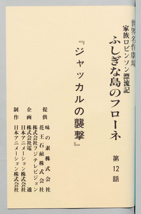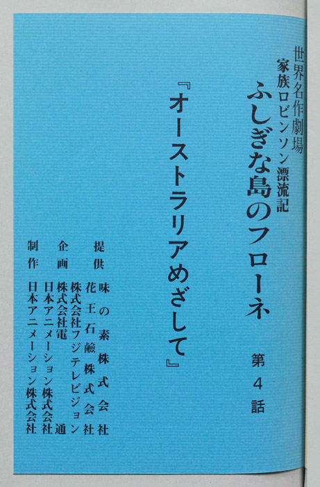 主な出演 : (フローネ)松尾佳子,(フランツ)古谷徹,(ジャック)高坂真琴,(エルンスト:父)小林勝彦,(アンナ:母)平井道子,(フローネの級友)中野聖子,(マリー)間嶋里美,(肥った婦人)峰あつ子,(診療所の患者)小野丈夫,(郵便屋),(肥【家族ロビンソン漂流記 ふしぎな島のフローネ】1813年、開業医を営む「エルンスト・ロビンソン」は妻「アンナ」、そしてその子供たちである長男「フランツ」、長女「フローネ」、次男「ジャック」の5人