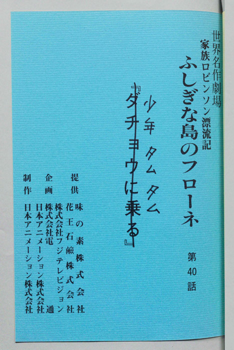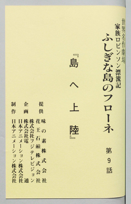 主な出演 : (フローネ)松尾佳子,(フランツ)古谷徹,(ジャック)高坂真琴,(エルンスト:父)小林勝彦,(アンナ:母)平井道子,(ジョン:犬),(メルクル:プチクスクス)【家族ロビンソン漂流記 ふしぎな島のフローネ】1813年、開業医を営む「エルンスト・ロビンソン」は妻「アンナ」、そしてその子供たちである長男「フランツ」、長女「フローネ」、次男「ジャック」の5人