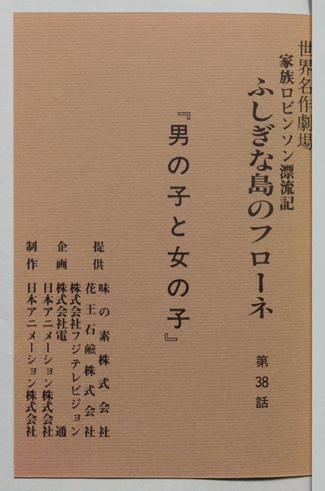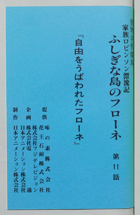 主な出演 : (フローネ)松尾佳子,(フランツ)古谷徹,(ジャック)高坂真琴,(エルンスト:父)小林勝彦,(アンナ:母)平井道子,(フローネの友だち1,2),(フローネの級友1,2),(本屋の主人),(近所の主婦1,2,3),(肥った紳士)藤本譲,(マ【家族ロビンソン漂流記 ふしぎな島のフローネ】1813年、開業医を営む「エルンスト・ロビンソン」は妻「アンナ」、そしてその子供たちである長男「フランツ」、長女「フローネ」、次男「ジャック」の5人